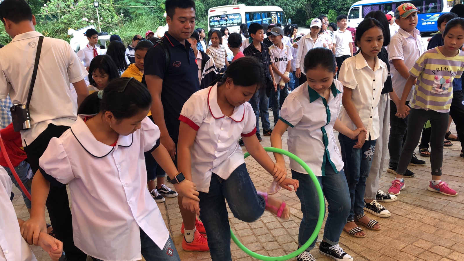 Nối tiếp chương trình trải nghiệm, các bạn học sinh tiếp tục hành trình tập hợp tại Sân lễ hội - sân teambuilding của Công viên, đây là một trong những khoảnh khắc mà các bạn được thỏa sức trải nghiệm, "lăn xả" cùng bạn bè và thầy cô của mình với những trò chơi đồng đội cực kì hấp dẫn, cực kỳ sôi động.