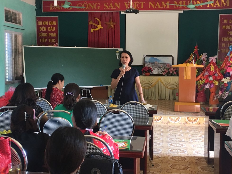 Cô Nguyễn Thị Hồng - Phó Phòng GD&ĐT TP Hòa Bình có đôi lời phát biểu trong cuộc tổng kết.