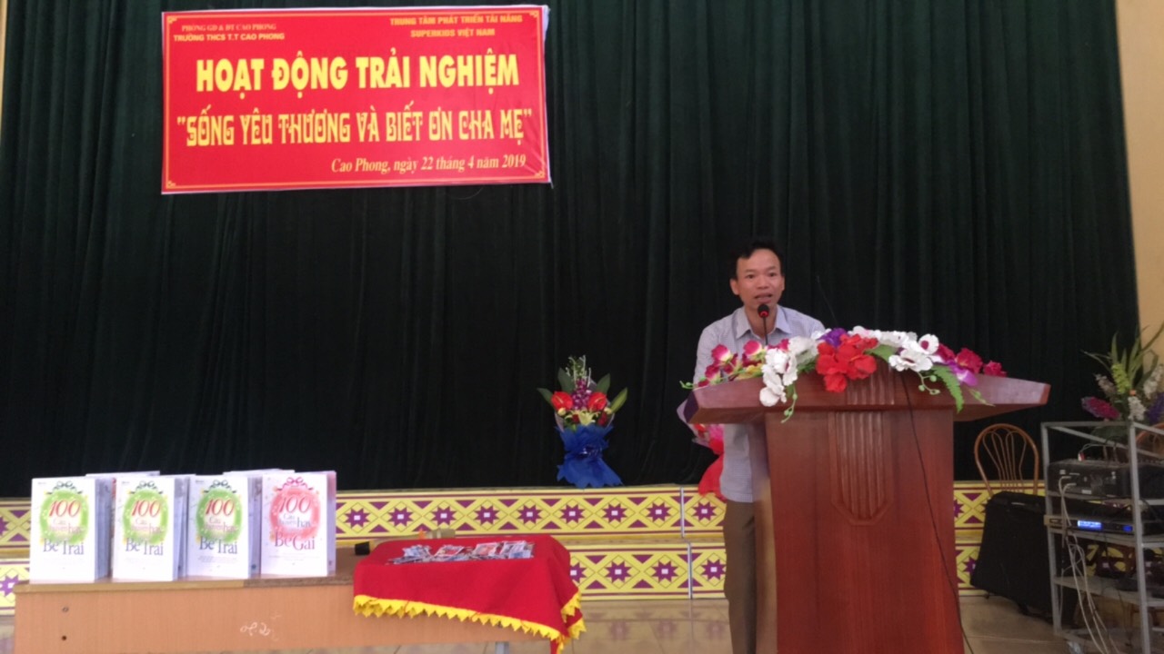Đến với chương trình, rất vinh dự được sự cho phép và ủng hộ của Phòng GD&ĐT huyện Cao Phong. Nhà giáo Phạm Ngọc Nhất - Trưởng phòng GD&ĐT huyện Cao Phong đã có mặt và có lời phát biểu rất tâm huyết dành cho chương trình.