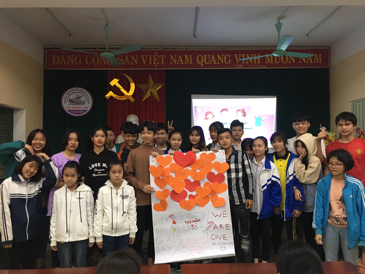 Tập thể học sinh lớp 9B - Cùng thông điệp "We are one"