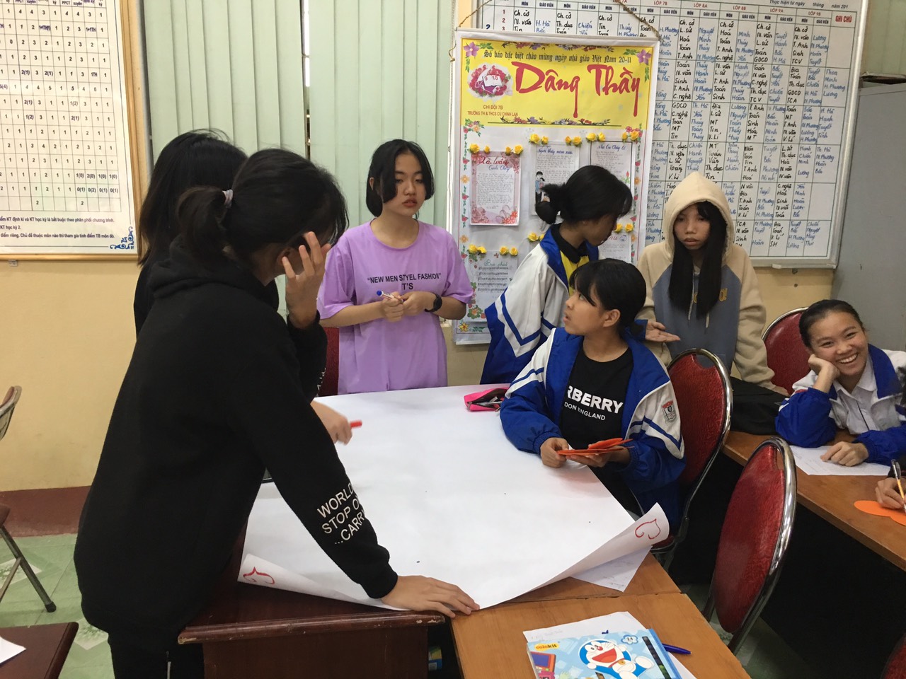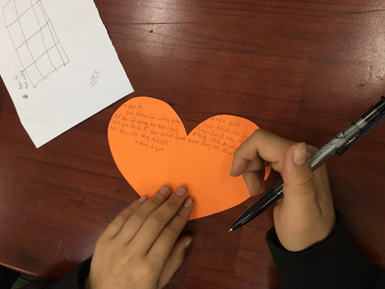 Một hoạt động vô cùng ý nghĩa đó là "Cây yêu thương", các bạn sẽ viết những chia sẻ, những lời nói dành cho bạn bè, thầy cô sau đó dán lên tờ giấy A0 và treo trên lớp của mình.