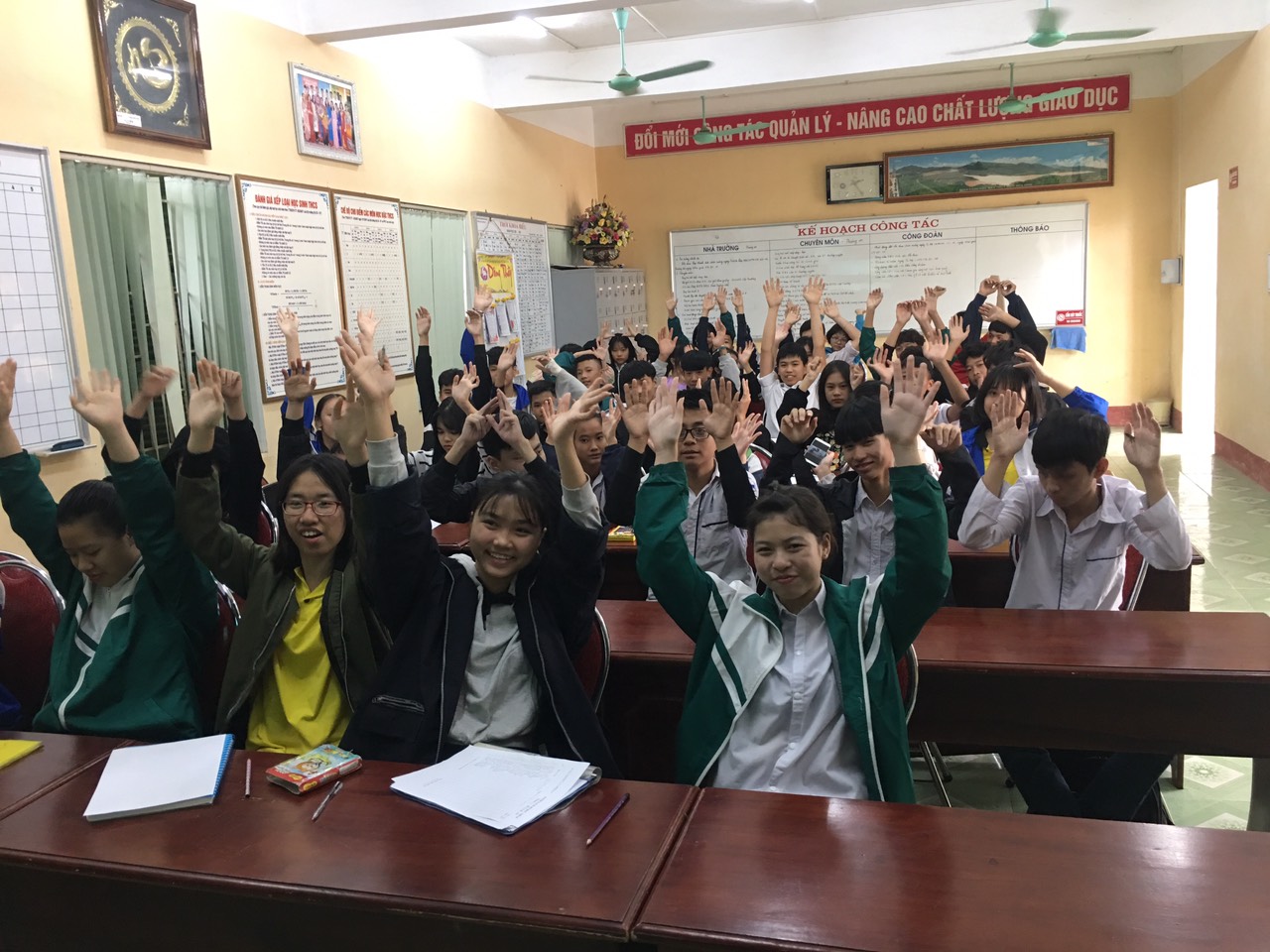 Tiết học sôi nổi với sự tương tác của các bạn học sinh trong lớp.