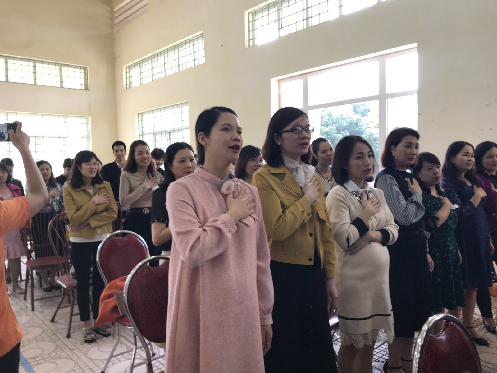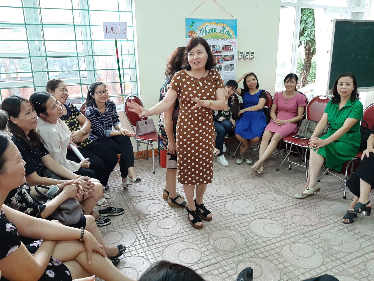 Cô Vũ Thị Thanh Thủy - Hiệu trưởng trường TH Trần Quốc Toản cùng đồng nghiệp vui tươi trong suốt khóa học.