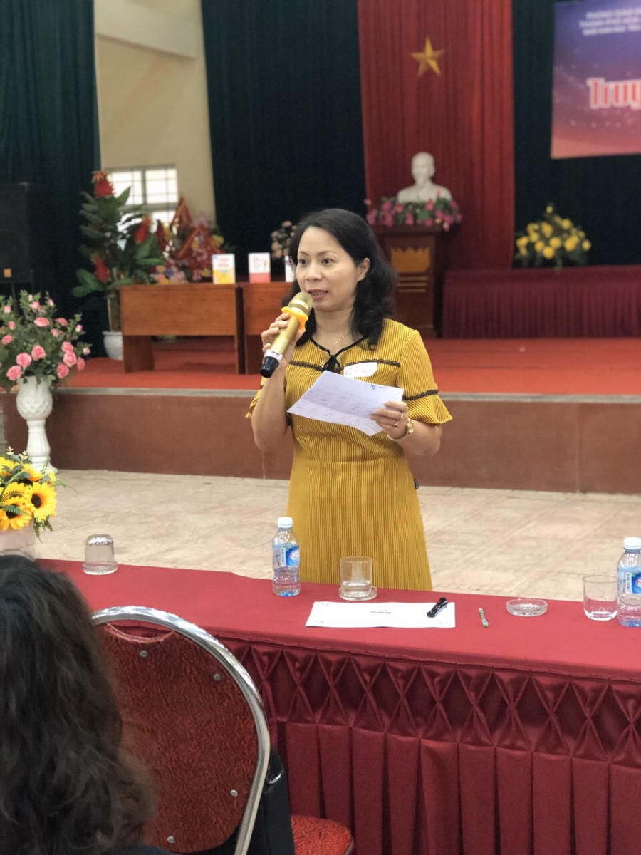 Cuối chương trình là đôi lời phát biểu của cô Vũ Thị Thanh Thủy - Hiệu trưởng Trường Tiểu học Trần Quốc Toản.