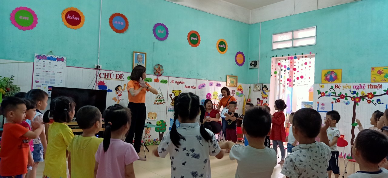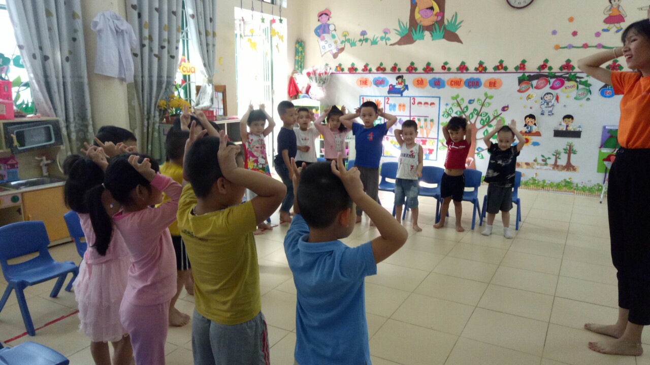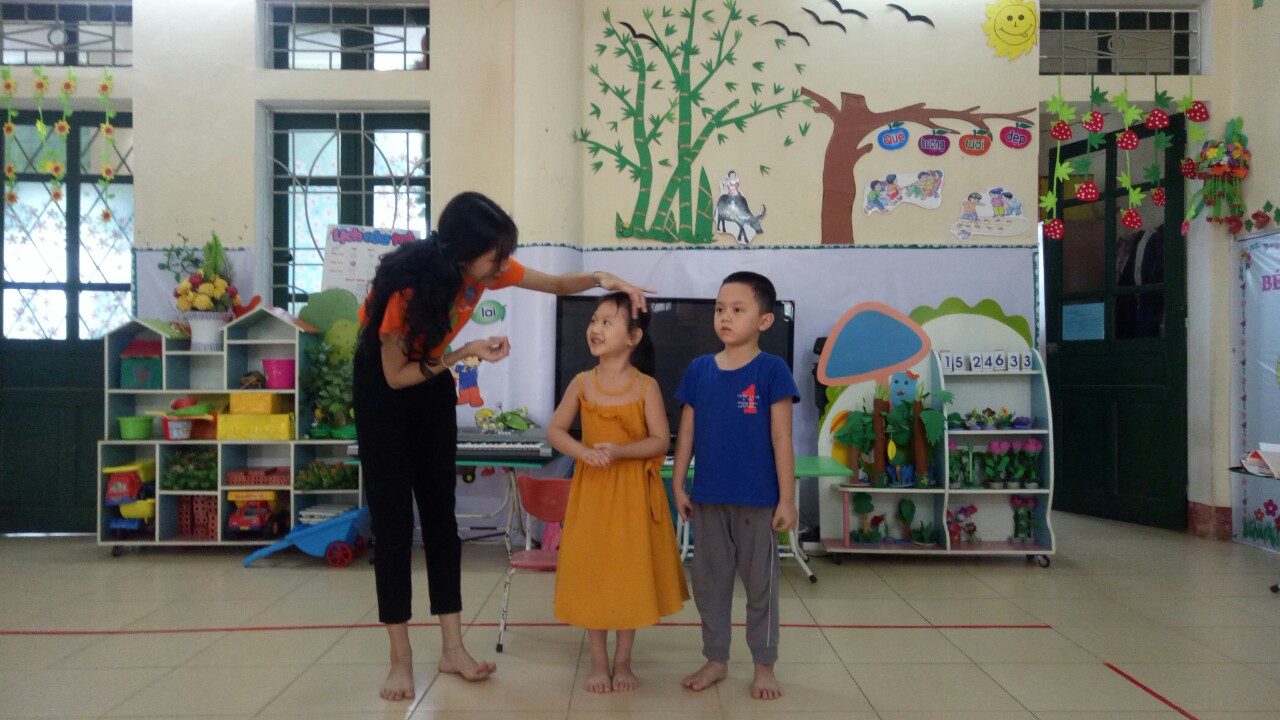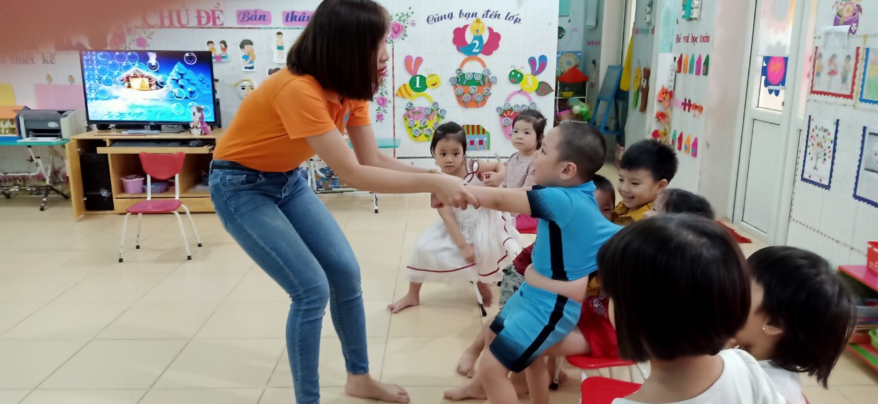Cô giáo thực hành với học sinh mầm non.