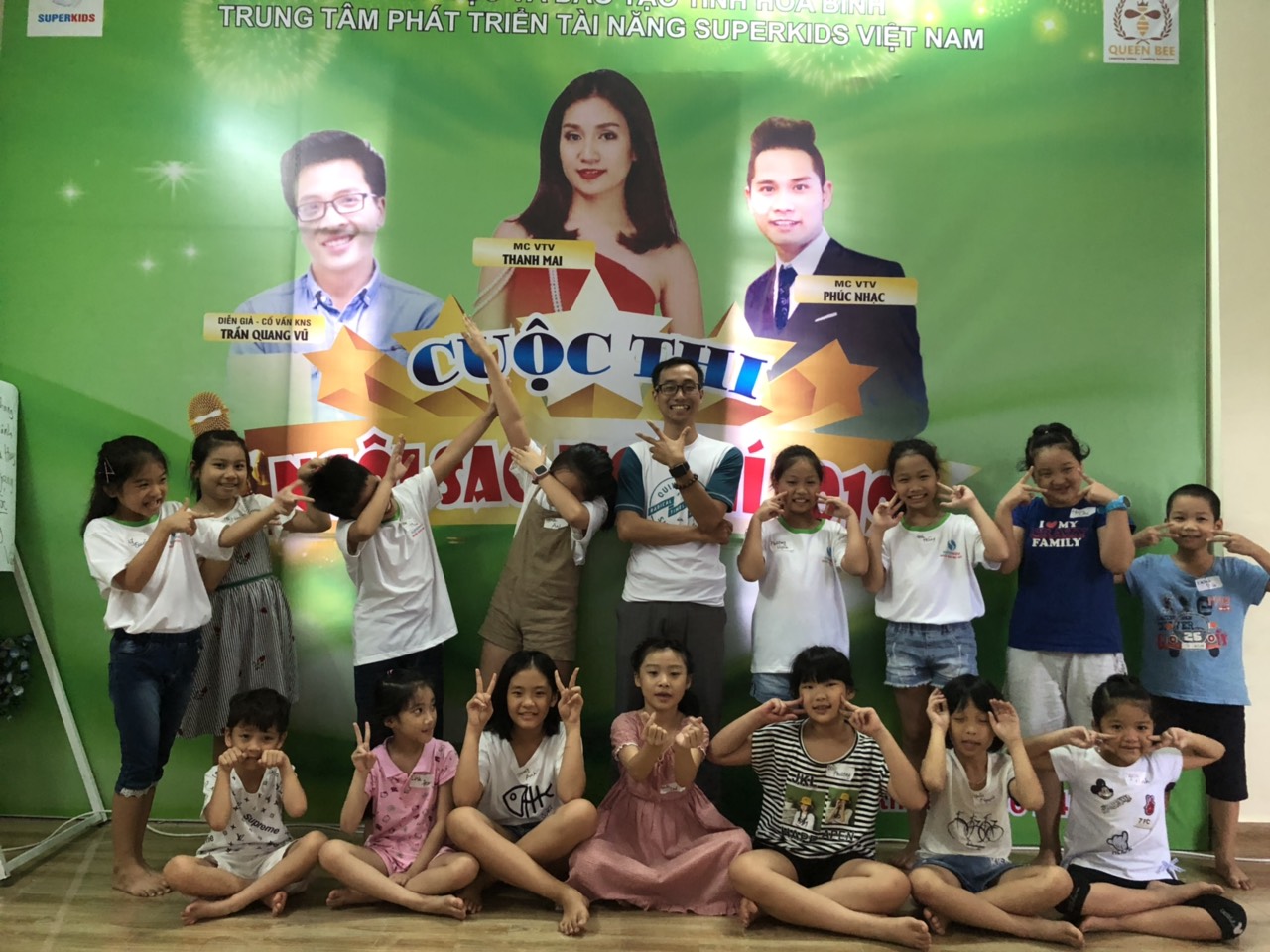 Lớp MC nhí Superkids vui, cực vui với Giảng viên Quốc Anh