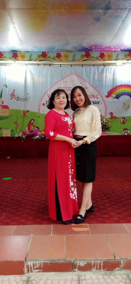 Cô giáo Thúy Ngần cùng cô Nguyễn Thị Lan - Hiệu trưởng trường MN Thịnh Lang.